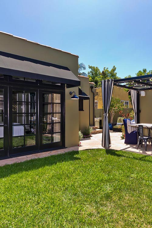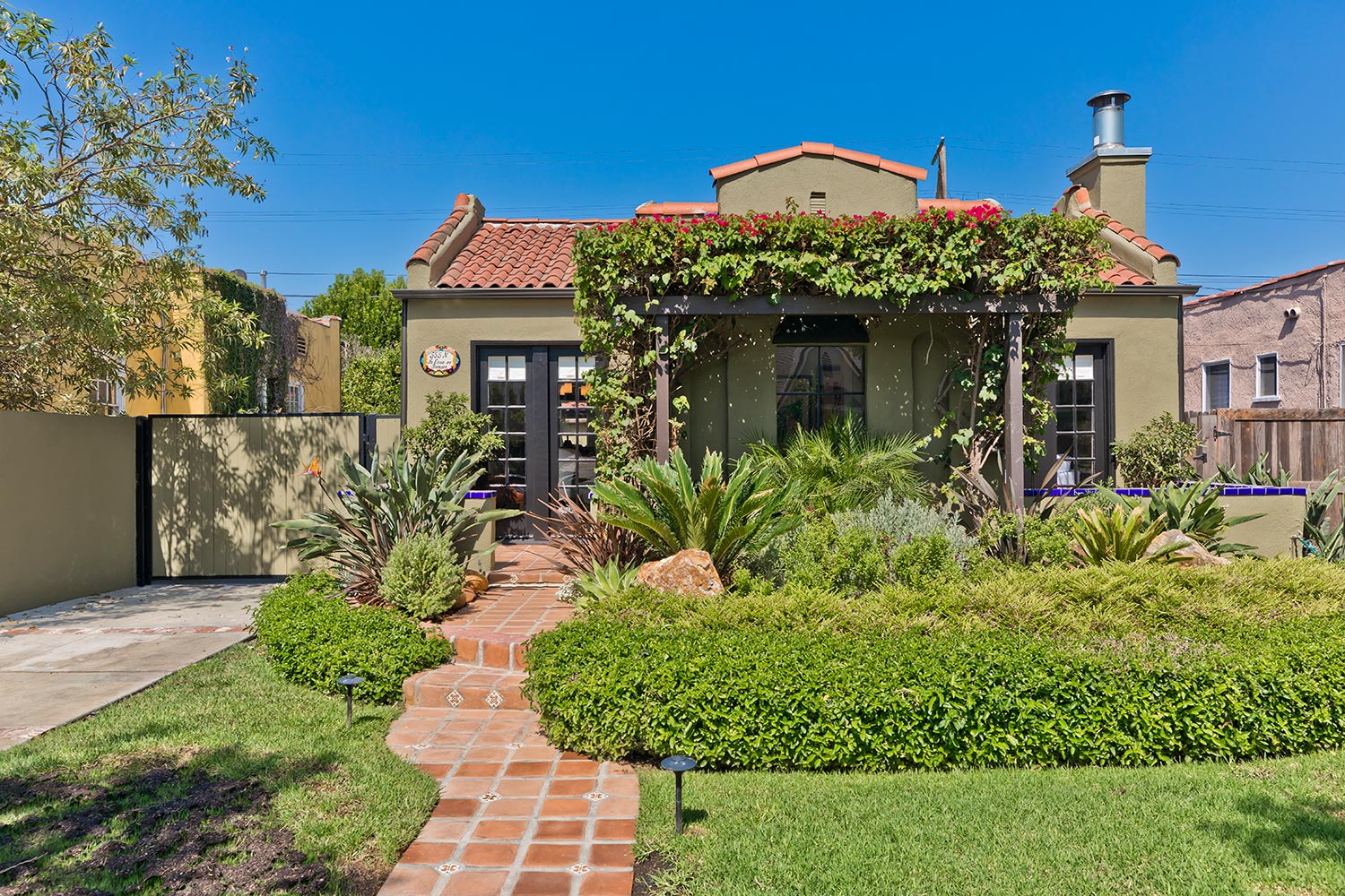 Pristine Larchmont Village 1923 character Spanish 2 bed 2 bath. Extensively renovated. Living room with Batchelder fireplace, and French doors to quaint patio. Hardwood floors, French windows. Recently remodeled open kitchen w/ quartz counter-tops, stainless steel appliances. Large master suite with sitting room, recently remodeled en-suite bathroom with dual sinks, and walk in closet. Additional bedroom and remodeled hallway bathroom. Family room off of kitchen perfect for entertaining. Garage converted to Bonus room for utility/office/cabana with AC system. In main house, central HVAC, electrical and plumbing upgrades, tankless water heater, bolted and much more. Automated driveway gate. Professionally landscaped, private yard. Close proximity to the Larchmont Village, Lemonade, Providence, Paramount Studios, Burns Park, Salt & Straw, & Sunday Farmer's market. An absolute gem.